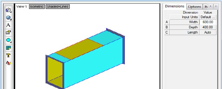This feature allows holes to be intelligently cut into rectangular straight developments when positioning taps\shoes, or any object, to the face of straight duct (CID 1866). This eliminates the need to manually edit developments in CAMduct.