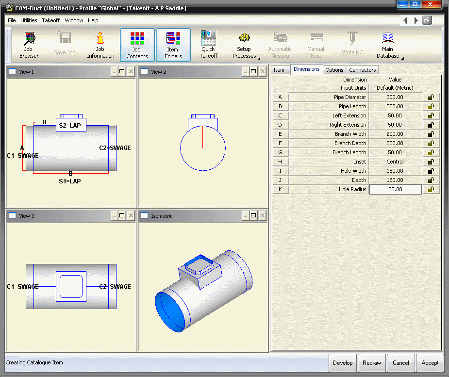 - You can now enter all of the relevant dimensions etc required to create the fitting.