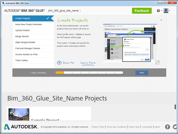 - Once logged in to Autodesk BIM 360 Glue, if you are the host administrator, complete the steps in the Create Projects section. See the BIM 360 Glue Help for more information.