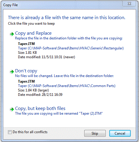 If the pattern template already exists in that folder, a Windows message is displayed asking to confirm the action.