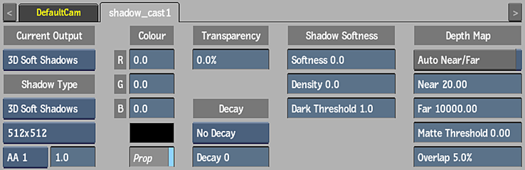 - Select the type of shadow to output. This setting is repeated in the Output Options section of the Output menu.