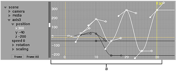 (a) The Hermite curve before applying Tangent L. Note that none of the keyframes are broken.