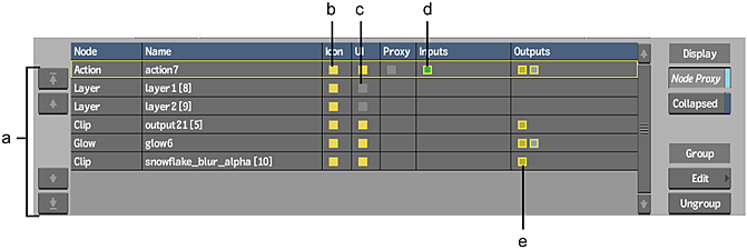 Icon | Toggle the node's visibility in the group. Icons in the Group List are yellow when the node is visible and grey when hidden. |
