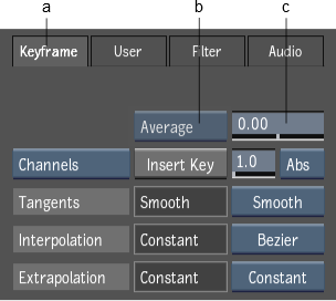 (a) Keyframe tab(b) Curve option box (c) Curve Value field