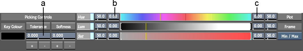 Tip: As a reference, when setting softness and tolerance ranges, you can display the colour value for any pixel in the key-in clip using the Plot tool. You can then adjust the tolerance or softness range so the pixel falls within one of the ranges. For example, plot pixels at the edges of the matte to check for softness, or plot pixels in the background to check for tolerance.