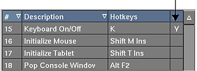 The Keyboard Shortcut catalogue shows all keyboard shortcuts for your product. Keyboard shortcuts appear in yellow text or in white text in the list:
