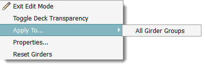Once you have modified settings for a girder group, you can choose to apply those settings to all girder groups in the selected bridge, or reset all girder group settings for the bridge to the default girder group settings for the current bridge style.