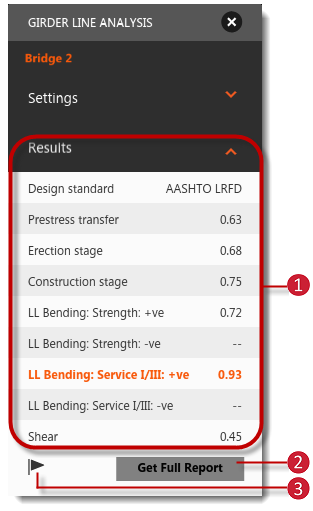 - Once you have completed Line Girder Analysis, click the icon next to the Get Report button.
