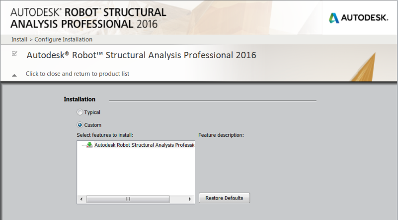Click on the Autodesk Robot Structural Analysis Professional band of the Install > Configure Installation page of the Installer to reveal the configuration area.