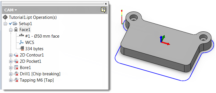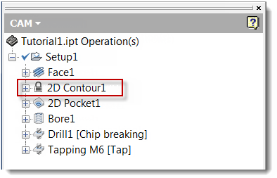 The 2D Contour1 operation is protected as shown by the padlock icon