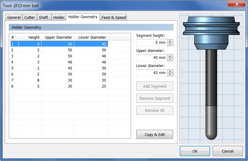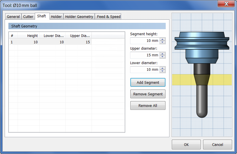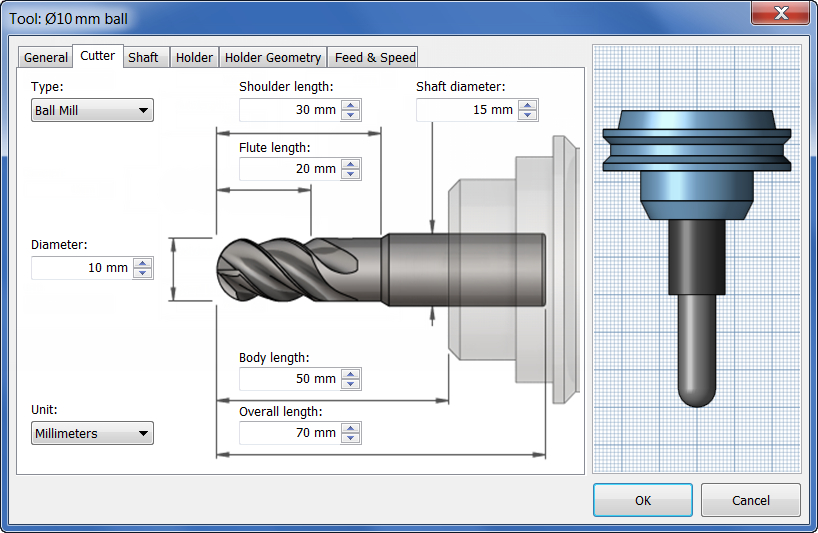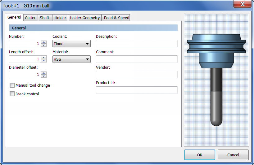 The preview on the right side of the dialog displays the shape of the tool and is automatically updated to reflect any changes you make.