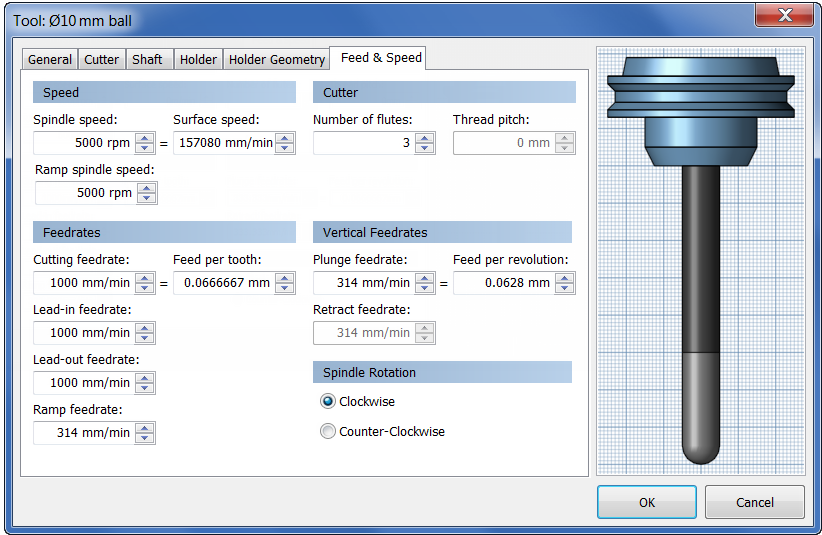 This option is active by default. All tools (except left-handed taps) rotate clockwise (M3).