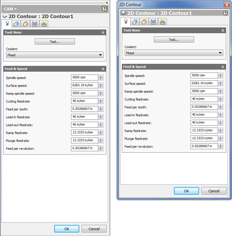 Normally, the Operation dialog box shares the same space as the CAM Browser. You can separate the Operation dialog from the CAM Browser so that it can float freely or be docked to a more convenient location by doing the following: