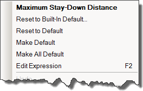 As far as possible, Inventor HSM Express provides working default values for each of the strategy parameters found in the Operation dialog box. You can control the default values of each parameter by right-clicking over the parameter name to display the pop-up context menu shown below.