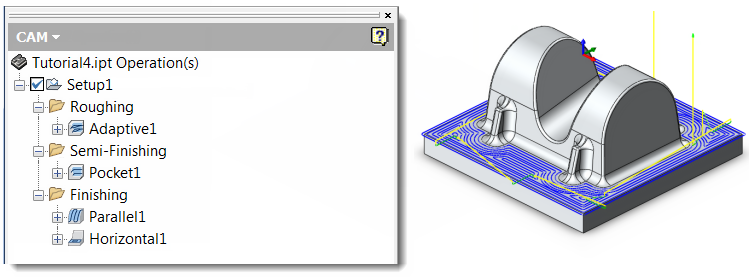 Unlike setups, folders do not affect the operations that they contain, but are useful for grouping operations. For example, a common scenario is to create separate folders for roughing, semi-finishing, and finishing operations.
