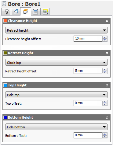 Bottom height determines the final machining height/depth and the lowest depth that the tool descends into the stock. Bottom height needs to be set below the Top. Bottom height is used together with the subsequent offset to establish the height.