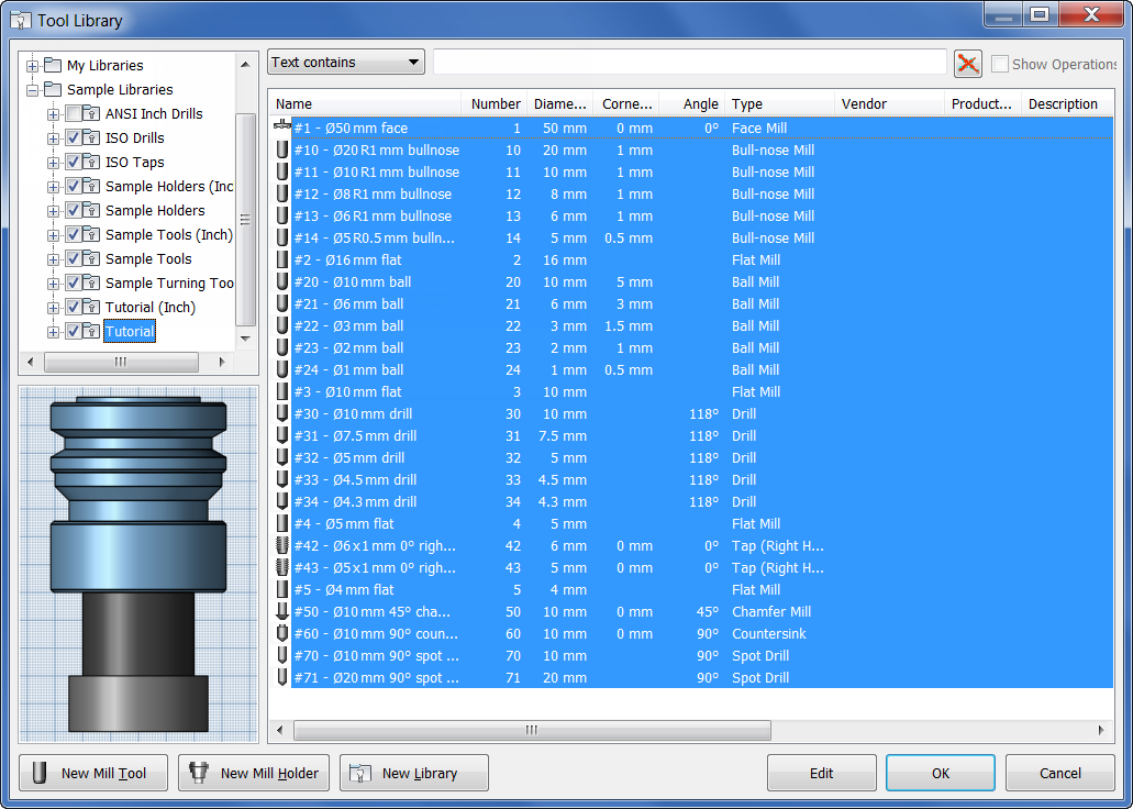 - Edit the tool data, but do not change the column names (type, unit, description etc.). Also make sure that text fields such as type, coolant, and material only contain valid ID's. If you are in doubt about which ID to use, simply create a tool with the needed setting in the Tool Library dialog box, and paste it into Microsoft Excel.