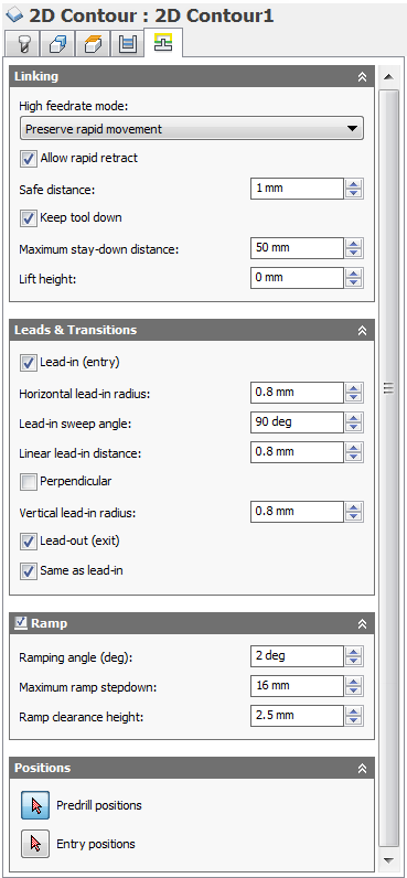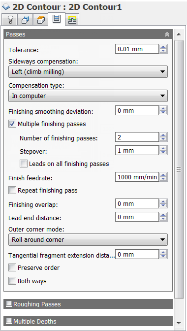 For finishing operations, the default value is 0 mm / 0 in, i.e. no material is left.