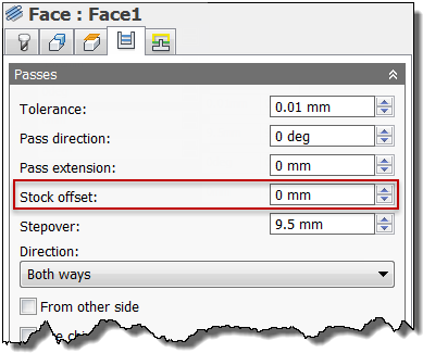 The Face strategy allows you to specify an additional offset for the automatic or manual stock contours by means of the Stock offset setting.