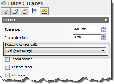 Trace allows you to compensate the tool to the left and right of the selected contours.