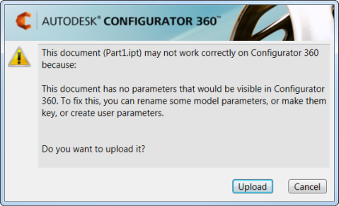 - Choose a part with only a few exposed parameters that are renamed or created in the Inventor Parameters window. Parameters marked as key are also processed.