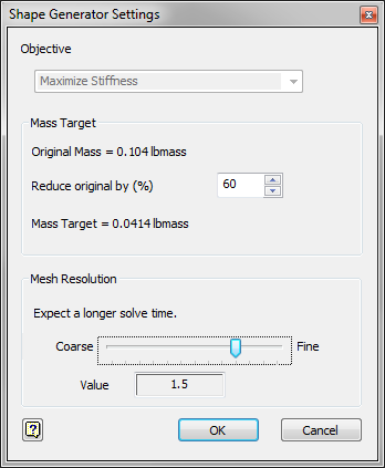 The Shape Generator Settings allow you to set a target mass reduction and the mesh resolution.