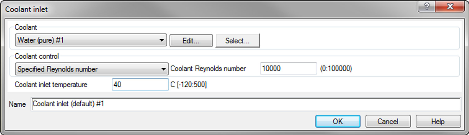 Set the Coolant inlet temperature to 40° C, and Click OK.