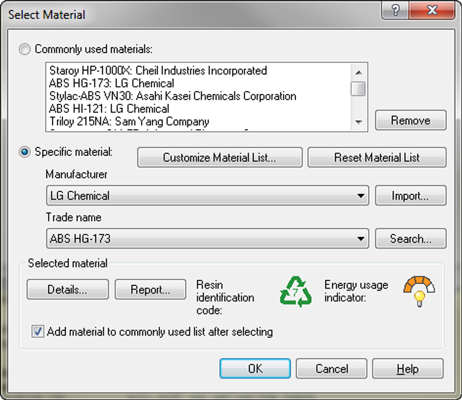 Click (Home tab > Molding Process Setup panel > Select Material).