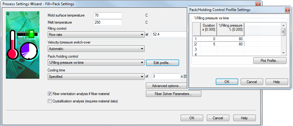Set the Filling control to Flow rate of 52.4 cm^3/s