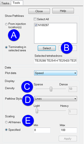 If you want to plot the pathlines of only those fluid particles that have reached a specific location in the mold, switch from From injection location(s), to Terminating in selected area, and select the specific area.