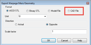 Prior to this release, you could export warped mesh data as STL files and use this data to reconstruct CAD models in 3rd party products. To provide a warped model with better surface quality than a mesh-faceted STL, a new feature is available to export the warped and/or windage shape of a model in a native CAD format.