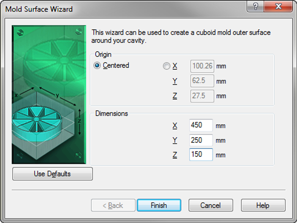 In this task, you use the Mold Surface Wizard to create a mold boundary.