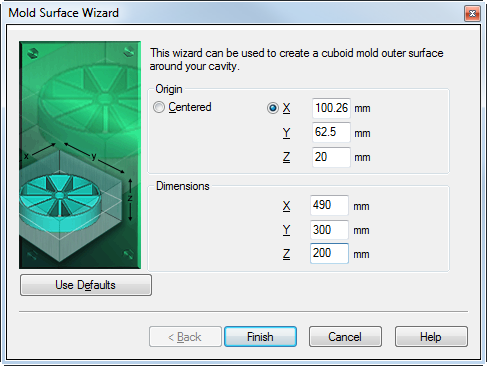 In this task, you will use the Mold Surface Wizard to create a mold boundary.