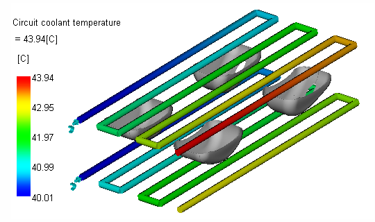 Click the Circuit metal temperature result. The circuit metal temperature is best when less than 5°C above the coolant inlet temperature, in this case 40°C. Both the circuit coolant temperature and the circuit metal temperature indicate a problem.