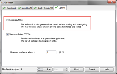 In DOE and parametric study analyses, there is an option to Keep result files in the Options tab of the Builder. For very large studies, this has occasionally resulted in problems when the resulting *.od4 file was too large for the unzip utility.