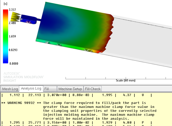 If the Do not exceed maximum clamp force option is checked, and the maximum clamp force is exceeded, you will see a warning in the log similar to the one below: