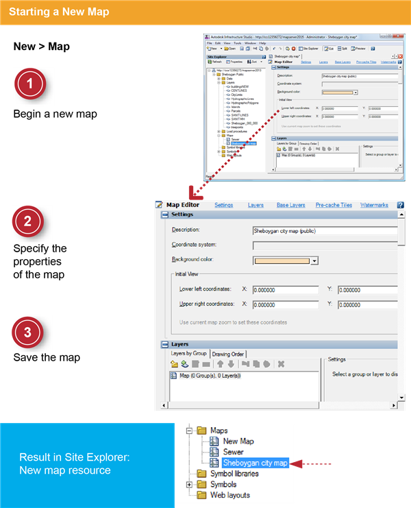 and save the map resource in the Maps folder with the name Sheboygan city map.