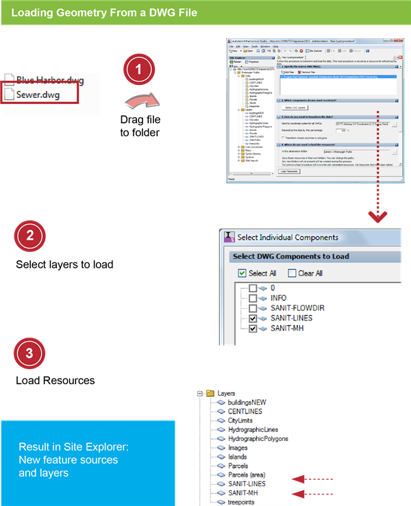 - Select the Sewer.dwg file. Drag the file to the Sheboygan Public folder in the Site Explorer.