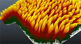 A new Spline Width Ramp lets you vary the width of spline primitives along their length. Use the Width Ramp to create custom shapes, such as feathers, scales, leaves, and other vegetation, from spline primitives.