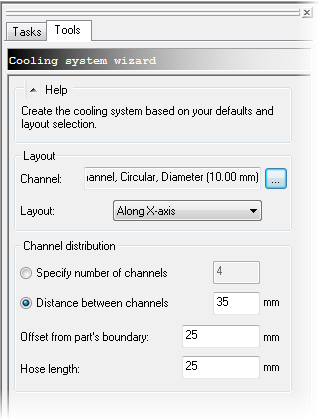 In this task, you create cooling lines using a wizard then modify the cooling circuits created.