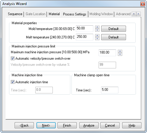 In this task, you select the thermoplastic material used to mold the part, and start the analysis.