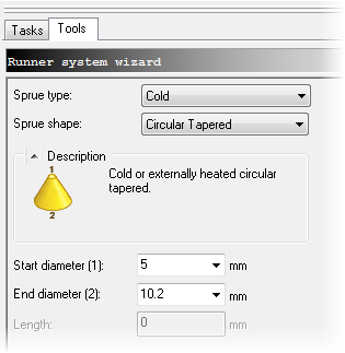 Ensure that the Sprue shape is Circular Tapered.