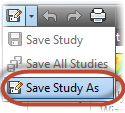 Click the Down arrow next to the save icon on the Quick Access toolbar and select Save Study As.