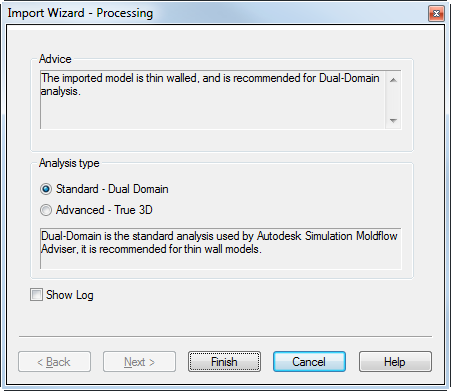 Click Finish to accept the analysis type as Standard - Dual Domain.