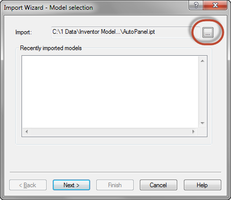 Click the Ellipsis button on the Import Wizard dialog box to find the file to import.