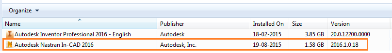 To remove/uninstall Autodesk Nastran In-CAD 2016, use the