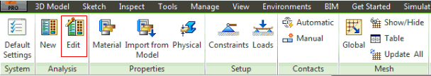Click on the Edit button under the Analysis panel on the ribbon or right-click on Analysis at the top of the tree and select Edit to open the window below.