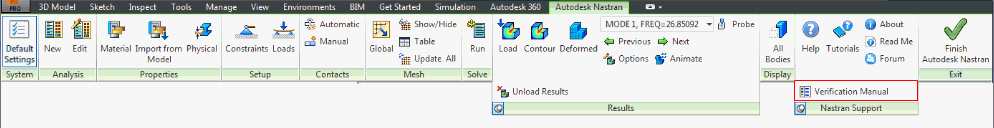 icon. The Autodesk Nastran Ribbon opens up. Now, click on Verification Manual button under Nastran Support panel.