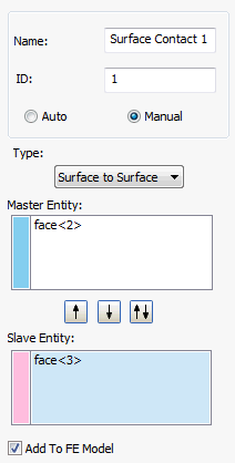 Add To FE Model: Surface contacts generated this way can be applied to an analysis by clicking the