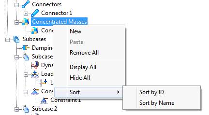 Once the Physical Property is added to the FE Model, the software creates a single node with all the Physical Properties. This will allow you to create a new Physical Property without going to the Model tree. It also allows the dragging and dropping from the Model tree - Physical Properties to this single node.